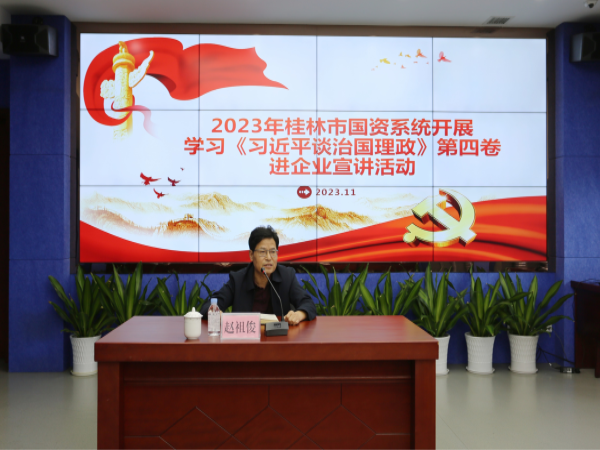 11月23日,,,,,,,桂林市国资委党委委员、副主任赵祖俊到集团公司开展党课宣讲,,,,,,,向企业党员干部职工宣讲《习近平谈治国理政》第四卷精神要义,,,,,,,并对基层企业改革发展进行指导。。。。。。集团公司党委副书记刘波及领导班子、...