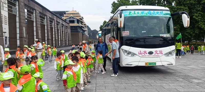 “请各位同学系好安全带,,,,,,,我们准备出发了!”10月23日,,,,,,,阳朔山水公司旅运公司7辆48座新能源大巴车载着300余名师生,,,,,,,从平乐实验中学出发前往阳朔如意峰开启研学之旅。。。。。。。