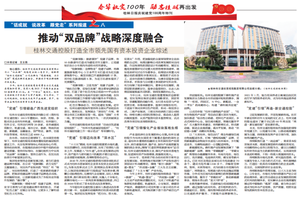 核心提示:桂林市交通德信体育控股集团有限公司以“双品牌”战略突出核心竞争力,,,,,,,,创新将“桂林交通控股”公司品牌与“党旗领航 活力交控”党建品牌深度融合,,,,,,,,并推动多项品牌创新升级发展。。。。。。。
