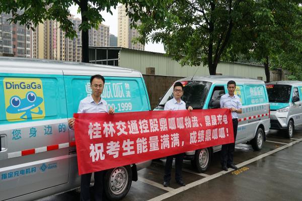 桂林交通控股鼎晟充电、鼎呱呱物流两大品牌,,,,,,,今年参与到桂林广播电视台飞扬883携手网易桂林举办的“爱心护考”的公益活动中,,,,,,,为考生提供新能源物流车送考服务,,,,,,,并为送考的新能源电动车辆减免充电服务费。。。。。桂林交通控股鼎翔旅游出租车参加了桂林市《齐心协力?同心护考》“爱心护考”公益活动,,,,,,,组织驾驶员成立送考车队,,,,,,,采取蹲点、巡游、热线约车等方式,,,,,,,全力以赴保障高考考生“安全、快捷、准时”抵达考场,,,,,,,给需要帮助的考生奉献一份爱心,,,,,,,为高考增添一抹温馨的色彩。。。。。(鼎和晟集团 鼎翔旅游)
