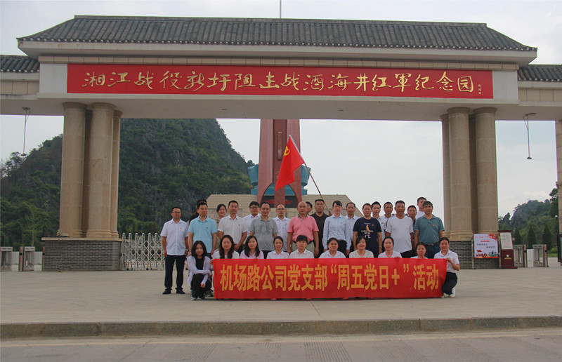 为深入学习贯彻党的二十大精神,,,,,,,扎实推进习近平新时代中国特色社会主义思想主题教育走深走实,,,,,,,2023年7月14日,,,,,,,中共桂林市机场路管理有限公司支部委员会、中共桂林市阳桂公路管理有限公司支部委员会(以下简称机场路公司支部委员会、阳桂公司支部委员会)组织党员同志们赴灌阳湘江战役新圩阻击战酒海井红军纪念园开展主题教育现场教育学习活动,,,,,,,接受党史和革命传统教育。。。。。。