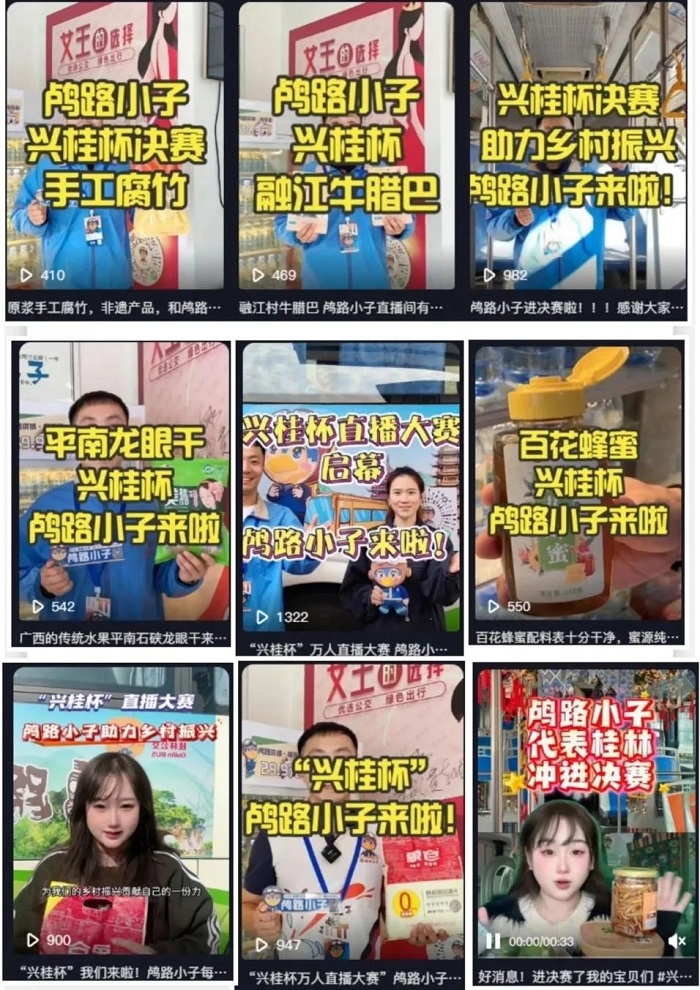 在数字乡村赛道中,,,,,,,,团队深耕农产品电商推广,,,,,,,,以"直播+短视频"组合拳打造传播矩阵。。。。。。。。通过87条创意短视频,,,,,,,,将广西手工腐竹、牛腊巴等农特产品搬上云端。。。。。。。。数据显示,,,,,,,,团队作品累计播放量达14.3万次,,,,,,,,直播观看总量突破百万人次,,,,,,,,有效拓宽了"桂字号"产品线上销路,,,,,,,,让网友透过镜头全方位了解“桂字号”农产品的品质,,,,,,,,实现销售额与品牌价值的同步提升。。。。。。。。