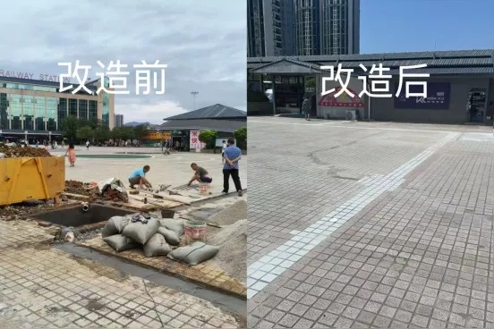聚焦旅客实际需求,,,,,,,广场近期完成多项“微改造”:解决历史遗留的污水排放问题,,,,,,,更换破旧广告牌20余块,,,,,,,新增约150米隔离护栏与6处安全防护设施;;; ;;修补破损地面200余平方米,,,,,,,连廊区域更换50张休息座椅;;; ;;升级后的高清监控系统实现无死角覆盖,,,,,,,16幅展现桂林山水与文化的公益广告在南北连廊亮相,,,,,,,成为展示城市魅力的“流动风景线”。。。。。。。。