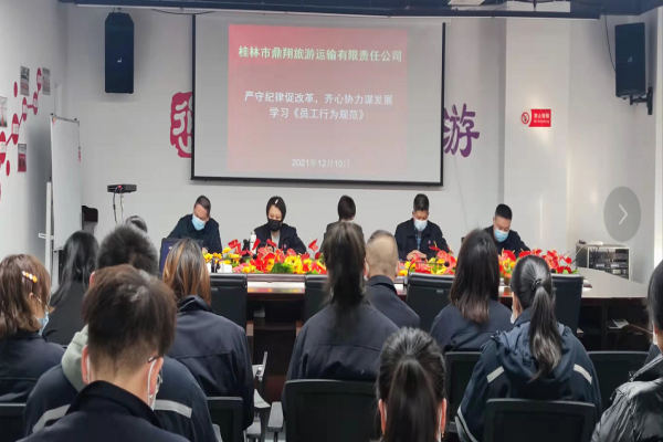 12月10日,,,,,,,鼎翔旅游召开全体管理人员会议,,,,,,,组织员工认真学习《员工行为规范》及相关文件,,,,,,,加强企业管理、加强制度建设。。。。。。